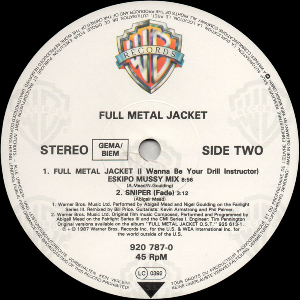 B1. Abigail Mead, Nigel Goulding – Full Metal Jacket (I Wanna Be Your Drill Instructor) (Eskipo Mussy Mix) 8:56