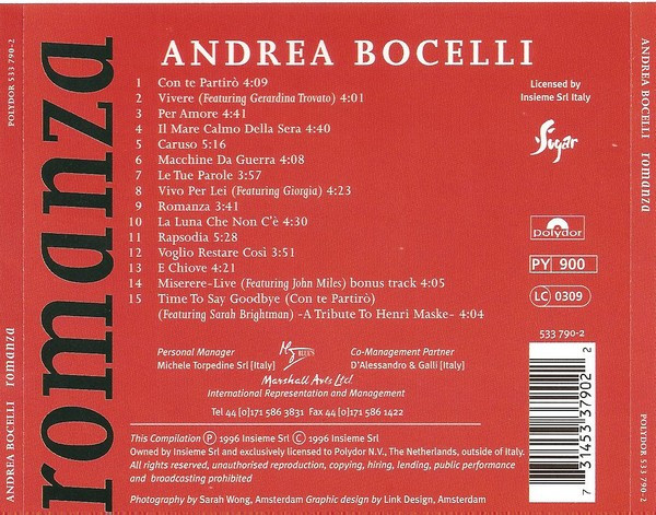 9. Andrea Bocelli – Romanza 3:41