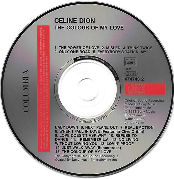 15. Céline Dion – The Colour Of My Love 3:25