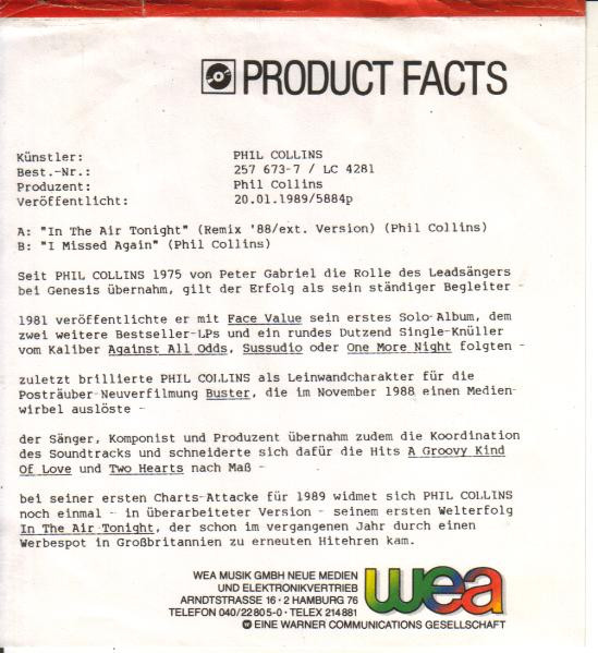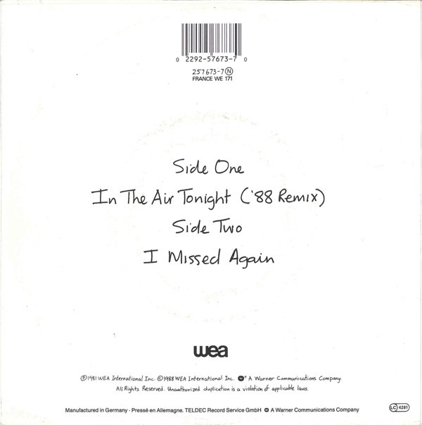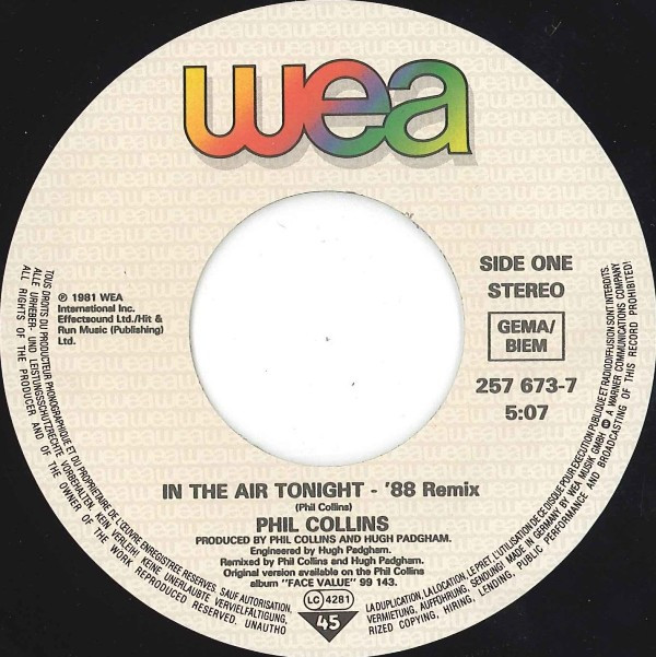 A. In The Air Tonight (’88 Remix) 5:07