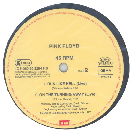 B1. Run Like Hell (Live Version) 7:30