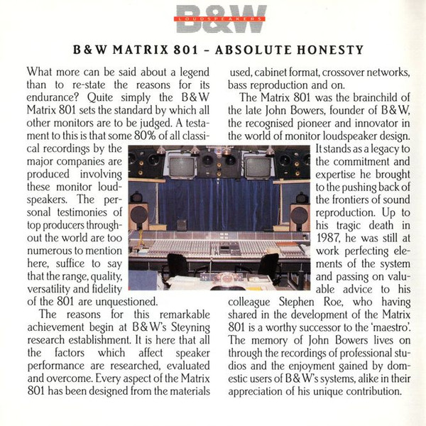 Label: B&W Loudspeakers,Angel Records