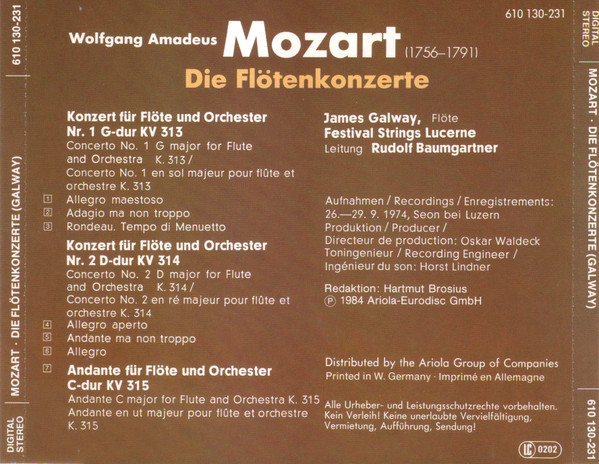 . Konzert Für Flöte Und Orchester Nr. 2 D-Dur KV 314